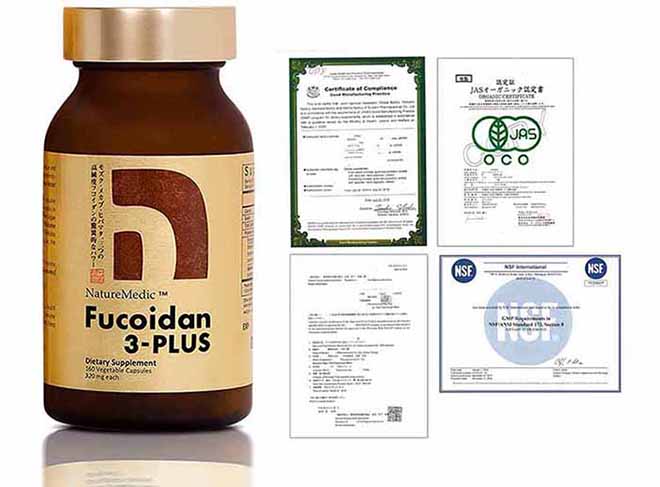 Fucoidan vàng là tên gọi đơn giản và thân thiết của viên uống NatureMedic Fucoidan 3-Plus, là sản phẩm được nghiên cứu với công thức độc quyền 3 loại Fucoidan (Mozuku, Mekabu và Fucus fucoidan) và sản xuất bởi các chuyên gia hàng đầu Nhật Bản. Sự ra đời của sản phẩm giúp người sử dụng khỏe mạnh, kiểm soát và ngăn ngừa nguy cơ gây ung thư, đặc biệt nó còn được xem là giải pháp hỗ trợ điều trị ung thư tốt nhất hiện nay.