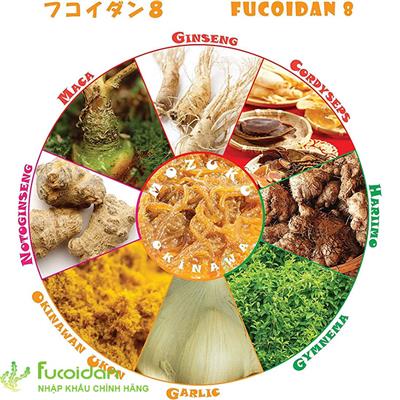 Viên uống Fucoidan 8 Nhật Bản được bào chế từ Fucoidan chiết xuất từ tảo Mozuku và 8 loại thảo dược quý